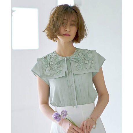 【S〜LL】【洗える】レースセーラカラーフレンチブラウス