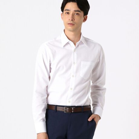レギュラー衿を使用したシンプルなデザインのシャツ。