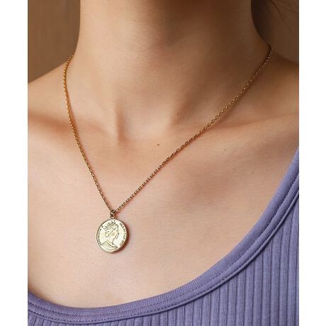 表と裏で違うデザインになっているリバーシブルで使えるコインネックレス。