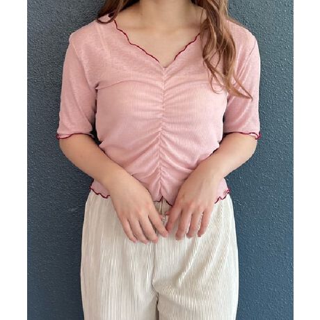 シアー素材のシャーリングトップス。今季も定番なシアーアイテム◎胸元にシャーリングが施されており、スタイルアップ効果も♪メローも程よく効かせて。フルレングスのボトムと相性バツグンの一枚です。前後着用可能です。《お取り扱いについて》・着用またはお取り扱いの際は、アテンションタグや洗濯ネームを必ずご確認ください。《注意事項》※商品の色や質感をできるだけ忠実に再現するよう心がけていますが、撮影場所やお使いのモニター環境により、実物と若干異なる場合がございます。予めご了承ください。※写真を許可無くコピー・転用することは固くお断りします。伸縮性:あり 透け感:あり