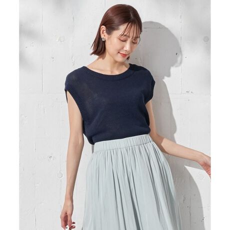 ■デザイン どんなボトムスとも相性の良い、着回し力の高いシンプルニットプルオーバー。後ろ身頃の中心には編み柄のラインを入れ、シンプルな中にもポイントを持たせました。後ろを前にして、デコルテが綺麗に見えるVネックプルオーバーとしてのご着用もお楽しみ頂けます。リラクシーなシルエットで、今っぽさをプラス。同じ糸で編みたてたライトシアーニットカーディガンとのアンサンブルもおススメです。爽やかなホワイト、ニュアンス感のあるピンク、夏にぴったりなカーキ、キレイ目見えもするネイビーの4色展開です。