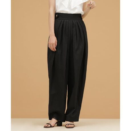 複数のタックを効かせた立体的なシルエットが特徴のバレルパンツ。腰周りは体型をカバーしつつも、裾にかけて窄まるすっきりしたラインが美脚効果を演出。キレイめにもカジュアルにも合わせやすく、デイリーの着回しに活躍します。