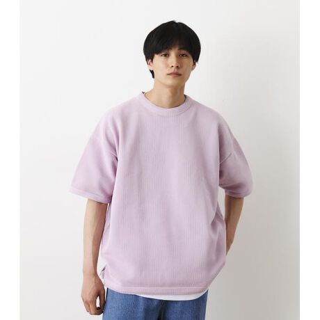 [型番:421FSW70-0670]ポリエステル糸を使用したニットTシャツ。トレンドのメッシュ柄でこれからの季節にぴったりです。肩幅や身幅に十分なゆとりをとった、今らしいリラックスフィットサイズです。