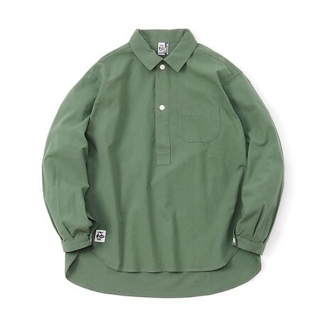ヨーロッパのヴィンテージシャツから着想を得たグランパシャツ。ゆとりのあるリラックスシルエットに、長めの着丈とプルオーバーが特徴的。トレンドのオーバーサイズコーデや、夏は短丈のショーツとも高相性です。フロントボタンの配置や横長の胸ポケットにこだわり、背中心のネック部分には吊りループを設けました。アイキャッチのあるブービーバードの織ネームは右裾に。