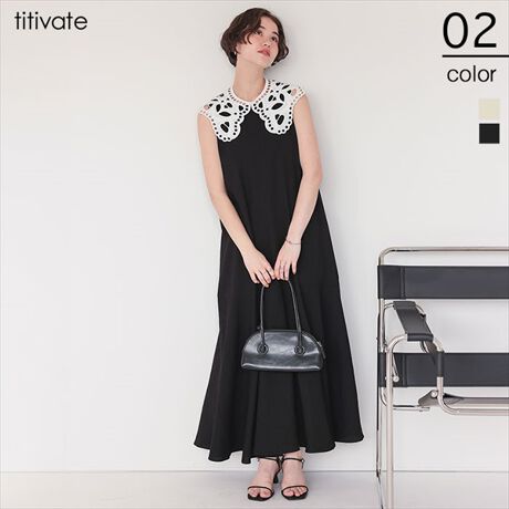・レース襟付きのフレアシルエットが綺麗なノースリーブワンピース。