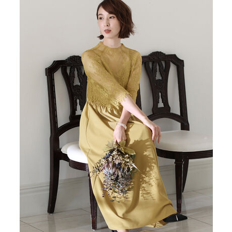 スカートの揺れ感と細やかなレースが華やかなデザインです。ウエストの切り替えでスタイルアップ効果も。