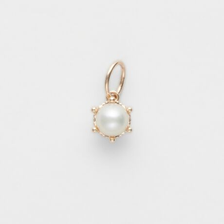 ミルククラウンをイメージした、パールの周りを囲む地金が印象的なプチチャーム。立体感のあるフォルムは単品着けでも、いくつか重ねて着けても万能です。※パールは、のり留め(芯立て)ですので水分にはご注意下さい。※チェーンは別売りになります。※天然石や天然素材を使用しているものは、サイズ・色味・風合いの違いや、若干の傷、内包物の有無などに個体差があります。予めご了承ください。