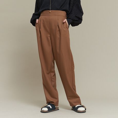 フロントはすっきりとしたウエストまわりのハイウエストパンツ。