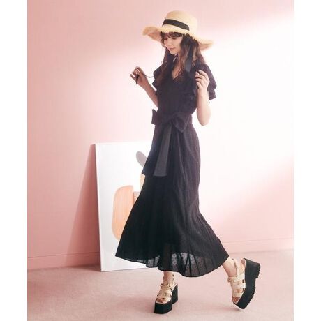 毎年人気のコットンレースワンピースから新デザインが登場たっぷり生地を使用した袖のフリルは華やかに見せてくれるだけでなく二の腕カバーに。ウエストも大きめリボンで着痩せ効果が期待できます。かわいさとスタイルアップの嬉しい要素を兼ね備えた主役級ワンピース。【styling】1枚で映えるワンピースです。腕を出すのが抵抗のある方はカーディガンを羽織るのも◎コットンレース×フリル×リボンで華やかなデザインなので、小物やアクセサリーは小ぶりで華奢なものをあわせていただくのがおすすめです。--------------------------透け感:ややあり裏地:あり伸縮性:なし生地の厚さ:普通---------------------------