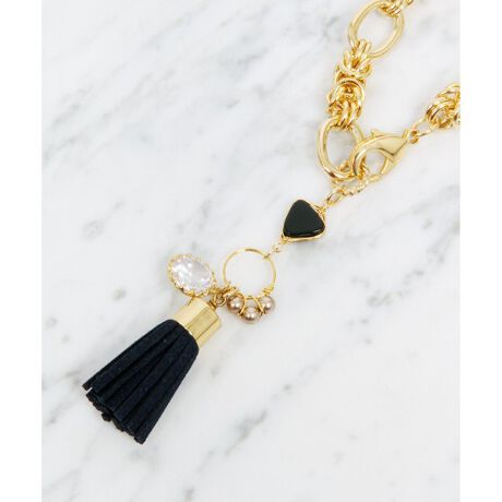 タッセルと天然石を組み合わせたオリジナルバッグチャーム。