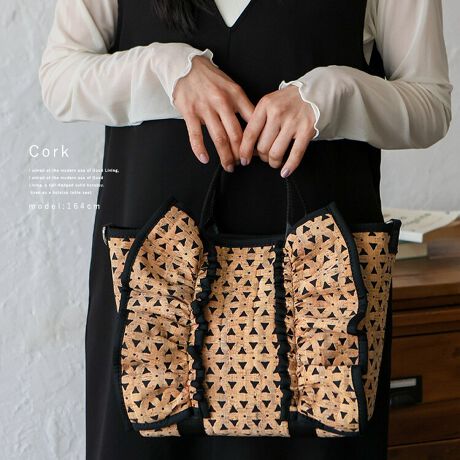 大きなフリルデザインが印象的なトートバッグ。
