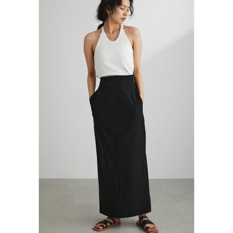モデル身長175cm(Mサイズ着用)ストレッチが効いたモードなスタイルアップが叶うマキシタイトスカート。動きやすいストレッチ性と身体のラインを綺麗にみせる程よい肉感がこだわりの素材。上品顔の高見えスカートです。スタミキらしいしっかりとしたマキシ丈に深いバックスリットが女性らしいモードな抜け感をプラス。太めのウエストラインで全体的にすっきりとまとまります。ポケットあり、ストレッチあり、透け感なし。【お手入れ方法】手洗い可