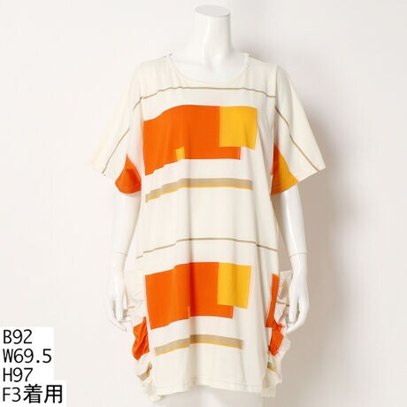 色鮮やかなスクエア柄が夏の明るい太陽に映える、鮮やかな色づかいの綿100%のカットソーです。女性らしいドルマンスリーブのゆったりしたシルエットとサイドの大きなポケットがアクセントになります。