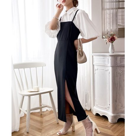 シンプルでタイトなシルエットに、上品なロングスリットがポイント。