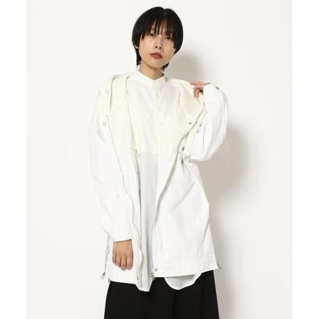パーカーとデニムジャケットがドッキングしたブルゾン。オーバーサイズで着丈も長めなので、ゆったりとしたシルエットでインナーにスエットや厚手のものも着やすいです。パーカー部分はダンボールジャージー素材なので、柔らかくストレッチ感があります。サイドにジップ付きです。【AULA / アウラ】川島幸美(Yukimi Kawashima)が設立。2016年春夏シーズン、海外展示会を中心に展開してきたアウラ(AULA)とアウラアイラがブランド統合し現在「アウラ(AULA)」として活動。ブランド名の「AULA」は、ラテン語やイタリア語で「オーラ、輝き」という意味を持つ。儚く繊細なしなやかさと中に芯の強さが見えるスタイル。オリジナル素材のクオリティーとパターンに拘ったMade in Japanコレクション。ブランドコンセプトは「自分のライフスタイルをプロデュースできる女性たちへ」。ファッションが成熟し、デザイナーズブランドが全盛期を迎えた1980〜1990年代を体験した女性たちは、多様な選択肢の中から自分のスタイルをセレクトできる美意識を確立。明確なライフスタイルを持ち、柔軟な感覚と凛とした知性を併せ持つ女性。そんなエイジレスな女性たちを思い描く。美しい輝きを放つものと、朽ち果てたもの。クラシックと前衛。強さと繊細さ。対極にあるコントラスティックなものを融合させながらデザインしている。■お使いのパソコンのモニターによって、実物商品とカラーが異なって 見える場合があります。誠に申し訳ございませんが、ご理解下さいます様お願いいたします。■当ショップの在庫数は 直営店舗の商品も含まれています。在庫数が日々変動する為、ご注文頂いた時点で在庫が完売になっている場合がございます。 ■サイズ表は、製品の生地や織りなどの特性により、多少の誤差はございます。予めご了承ください。 ■初期不良以外の返品・交換は致しかねます。予めご了承くださいませ。