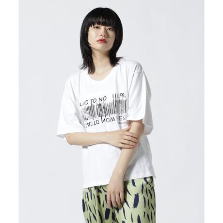 胸元にはコレクションテーマの「ROAD TO NOWHERE」の文字とバーコード柄のグラフィックを箔プリントで施しています。