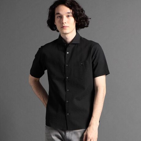 コットンサッカー カッタウェイカラー 半袖シャツ