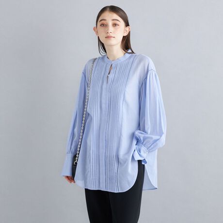 〈手洗い可能〉綿ガスボイル バンドカラー ピンタックシャツ◇