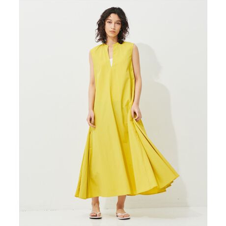 軽さとふくらみがありナチュラルな表面感がポイントのナイロン素材のワンピース。やや薄手でふくらみのあるコットンタッチとナイロンのソフトな風合いがポイントです。サイドに切り替えを入れることでボリュームを出したデザインは動くたびに揺れる夏らしい軽やかさが特徴。キーネックのフロントと背中はすっきりフラットなデザインでメリハリを付けています。夏らしいイエローを始め、ニュアンスカーキ、ダークグレー、ブラックの4色展開です。<br><br>※照明の関係により、実際よりも色味が違って見える場合があります。予めご了承ください。<br>商品の色味は、商品単品画像をご参照下さい。