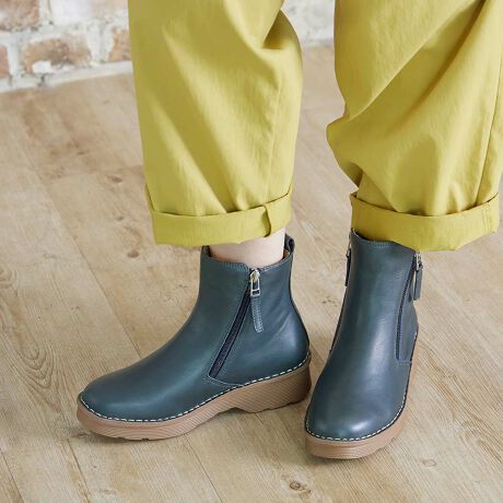 サイドファスナーデザインとなった、着脱も便利なショートブーツ。
