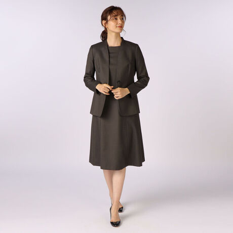 シャープな印象で着こなせるノーカラーデザインのウールシャンブレージャケット。フロントは1つボタン、左右にポケットを配置。後ろ袖口と裾にはベンツがあしらわれています。同素材のボトム、ワンピースとセットアップで展開したアイテムです。※商品画像はサンプルを使用しているため、実際の商品と色味などの仕様が異なる場合がございます。予めご了承ください。model:T.171/B.80/W.59/H.88着用サイズ:38
