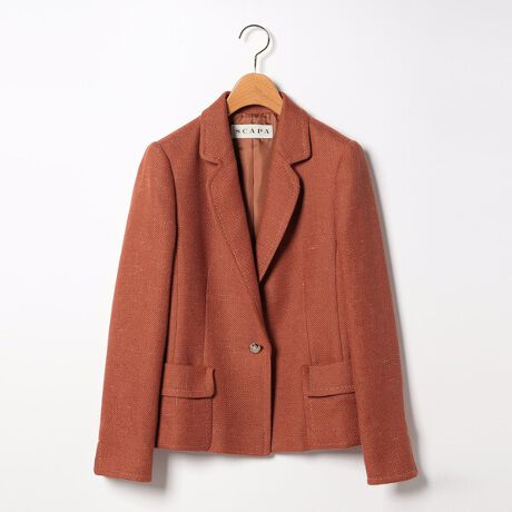 シングルボタンがスッキリとした印象のウールリネンのツイードジャケット。ステッチが施されており、アクセントになったアイテム。裏地付きで、幅広いシーズンで着用していただけます。袖にスリットが施されており折り返してスッキリとさせた着こなしがおすすめ。同素材のスカートと合わせて、セットアップとしての着こなしに活躍します。