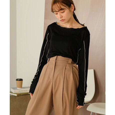 メローを施すことで女性らしい柔らかい印象に仕上げたトップスです。インナーとして使うことはもちろん、1枚着としても着用頂けます。体にフィットし過ぎず、程よい伸縮性があり、着やすいのもポイント。程よくゆるっとしたシルエットが抜け感を出してくれます。手元でくしゅっと溜まる長めの袖のルーズ感も◎!