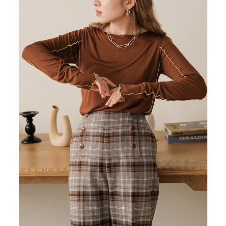 メローを施すことで女性らしい柔らかい印象に仕上げたトップスです。インナーとして使うことはもちろん、1枚着としても着用頂けます。体にフィットし過ぎず、程よい伸縮性があり、着やすいのもポイント。程よくゆるっとしたシルエットが抜け感を出してくれます。手元でくしゅっと溜まる長めの袖のルーズ感も◎!