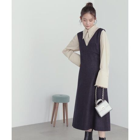 表情感のあるネップツイードで仕立てたジャンパースカート。前後で深めに開いたVネックでレイヤードスタイルが大人っぽい見え方に。ウエスト部分は前上がりの切り替えで腰の位置を高く見せ、広がりをおさえたシルエットが縦ラインをすっきり演出します。中にカットソーと合わせてカジュアルに、ニットやブラウスと合わせでフェミニンな雰囲気にも着られます。 こちらの商品は、WEB限定販売となります。 実店舗(N. Natural Beauty Basic*)でのお取り扱いがございませんのでご注意ください。