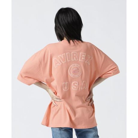 ブランドの代表的なバーシティーロゴを使用した、女性らしい配色が可愛いTシャツ☆メンズライクな印象が強いロゴを、配色を柔らかくし、可愛らしく仕上げました。刺繍を施し、立体感のあるディテールで1枚でも主役級のアイテムとなっています。ゆったり感のあるシルエットもポイント。 【AVIREX Belle】 本格的なミリタリーウェアが持つ機能性とデザインをレディースカジュアルに投影したライン。 個性的かつ時代性のあるレディースブランドとして聡明、自由、好奇心、凛として快活な 働く大人の女性へ向けたレディスカジュアルを提案しています。