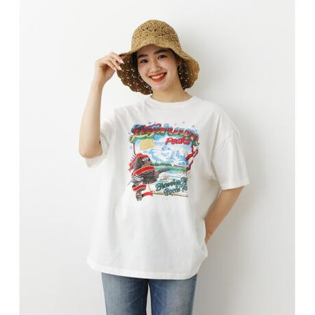 [型番:420FSI90-217V]ヴィンテージROCK Tシャツのような多色プリントがかっこいいTシャツ。ゆったりサイズでボーイッシュなスタイリングにぴったりなアイテム。