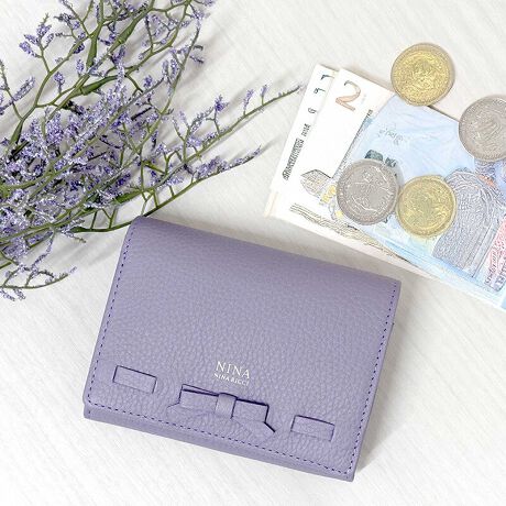 ニナ・ニナ リッチのロマンティックでスウィートな印象を与えるファスナー折りサイフです。柔らかく仕上げた型押しの牛革に編み込んだリボンディテールが、可愛いもの好きな女性心をくすぐるデザインになっています。ポケットも豊富で、使い勝手の良いお財布です。