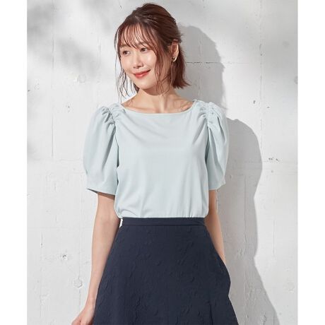 【洗える】マカロンカラーギャザースリーブ カットソー