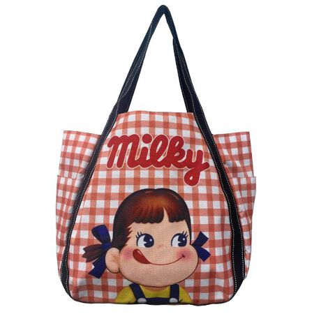 ペコちゃん 不二家 PEKOチェック柄バルーントート バッグ 赤 E-COME