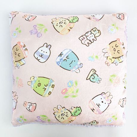 優しいパステルカラーのクッション。表面はふわふわ、裏面はもこもこボア生地で触り心地抜群です♪すみっコぐらしの仲間たちとリラックスタイムを過ごしてくださいね♪。