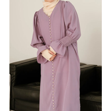 Babらしさがぎゅっと詰まった特別なワンピースです!一番のポイントはボタン使いと袖のシャーリング。くるみボタンをたくさん使うことでデザイン性を高めています。また本体生地と配色になっているのでカラーでアクセントを用いています。お袖はふわっとしたキャンディースリーブになるようにゴムでキュッとしたデザインに。シャーリング部分を長めに取っているので今年らしさも出て◎