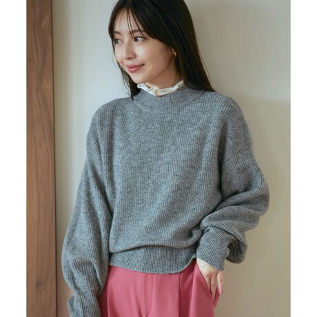 今シーズントレンドでもある複数の色からなるメランジカラーがポイントのハイネックプルオーバーニットです。