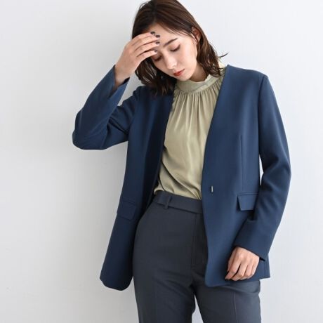 ストレッチ性が高く、素材に表情と膨らみのあるクレープ素材を使用した秋らしいジャケットです。