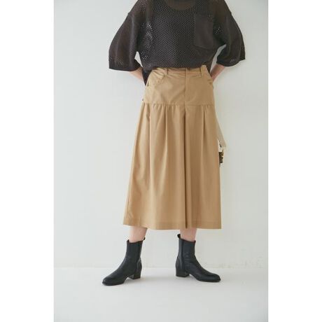 腰回りに切り替えを入れたティアードデザインのキュロットはスカートのように履けて晩夏のスタイリングのアクセントになります。