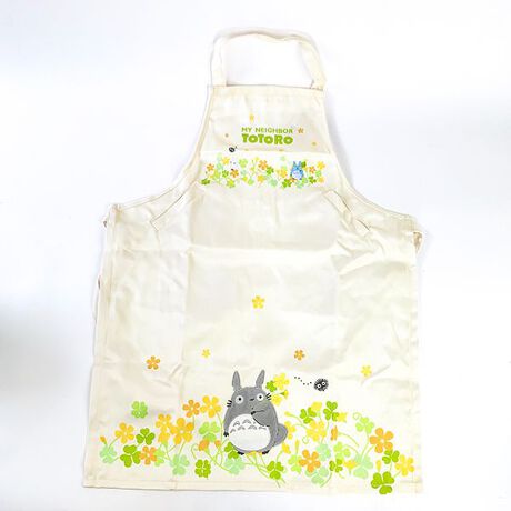 トトロのかわいいイエロー色のエプロン!お花畑にたたずむデザインがとっても可愛い♪お料理好きの方へのプレゼントにも最適!これを着ながら料理をすればモチベーションアップ間違いなし!?サイズ M〜L 身長154〜162cm バスト79〜94cm