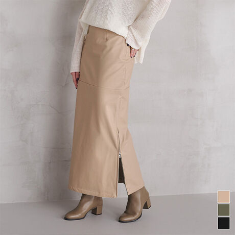 サイドスリットファスナーレザースカート