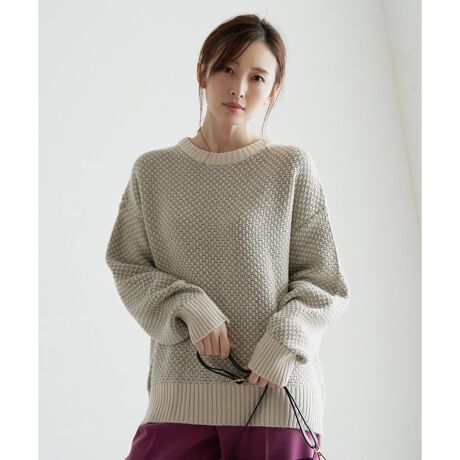 無地よりもおしゃれ感のある、表情豊かなバーズアイ柄ニット。