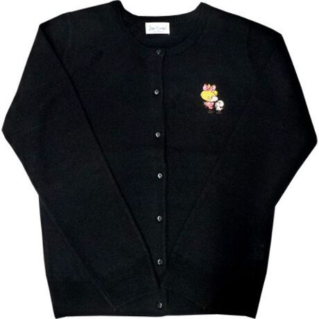 水森亜土 レディースカーディガン 刺繍 ブラック M 亜土ちゃん