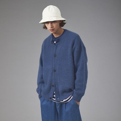 上品な光沢感とシャギー感が特徴的なカーディガン。起毛加工を施した生地を使用。ふんわりとした柔らかな表情が印象的で直接素肌に着てもストレスのないやさしい肌触りに仕上がっています。