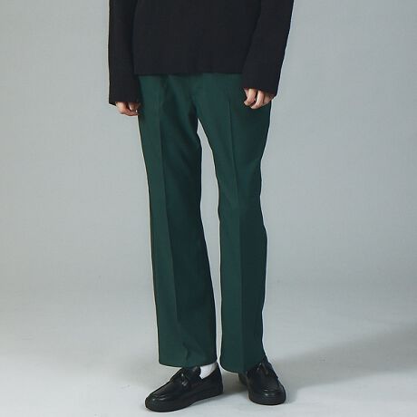 センタープレス入りのドレッシーな雰囲気ながら、着用や洗濯を重ねてもシワになりにくい、イージーケアに長けた素材感も魅力のひとつです。