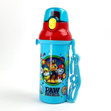 キッズに大人気「パウ・パトロール」から新生活グッズが大集合☆食器洗い乾燥機OKのプラスチック直飲み水筒は、プッシュ式で簡単オープン!本体は氷が入れやすい広口タイプ。肩にかけて持ち運べるショルダーベルト付。軽くて持ちやすい形状は小さなお子様にピッタリです!!※保冷効果はございません。※熱いものは入れないで下さい。【容量】480ml