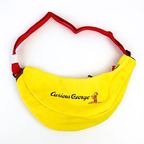 バナナ型がかわいいジョージのボディバッグ!!バッグの内側にもジョージがいっぱい♪これを持っていろんな場所におでかけしてくださいね♪(ショルダー全長:約109cm)