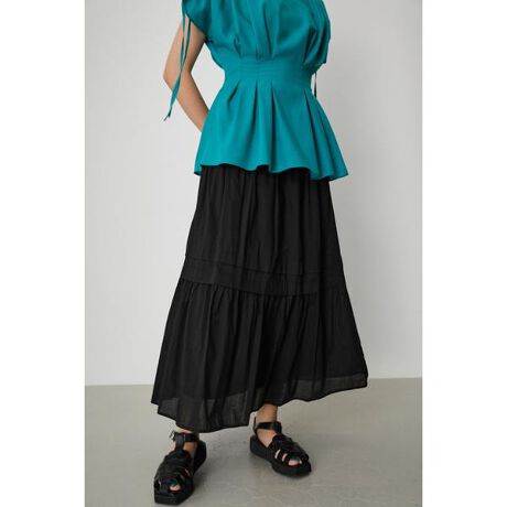 2022Spring&Summer item・さらっとした風合いが特徴のコットンボイルを使用。・夏にぴったりのコットン素材のスカートです。・ウエストもゴム仕様なのでストレスフリーで着用していただけます。・高い位置で切り替えも入っていますので、すっきりと見えるデザインになっています。<コーディネート>・、250FSB30-453E WAIST TUCK V/N DESIGN BLOUSEと合わせるのもおすすめです。・プリントTシャツと合わせてカジュアルライクなスタイルも◎。