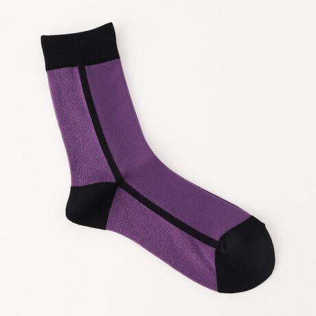 ウーリーナイロンとラメの大胆なブロッキンングが新鮮なデザインのソックスです。