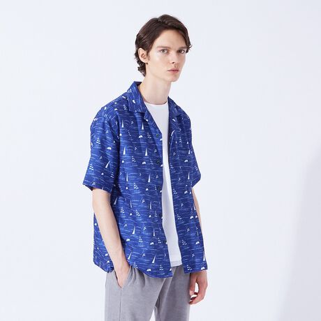 総柄プリントの程良いオーバーシルエットの半袖シャツ。オープンカラーの襟が、より夏のリゾート感を演出してくれます。
